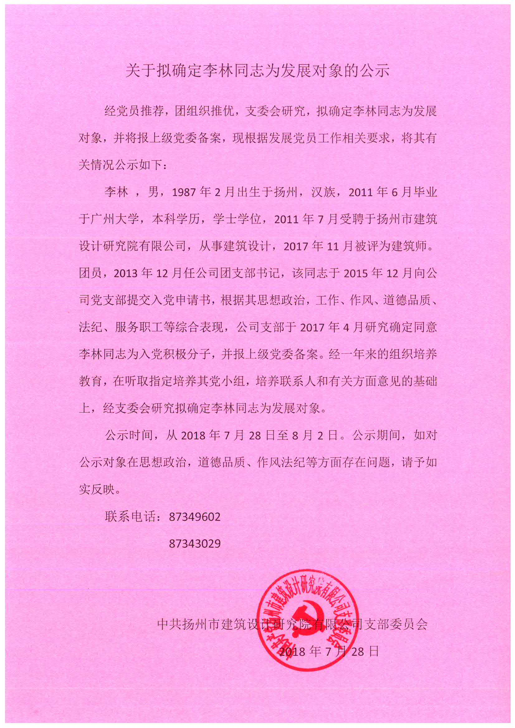 關(guān)于擬確定李林同志為發(fā)展對象的.. |